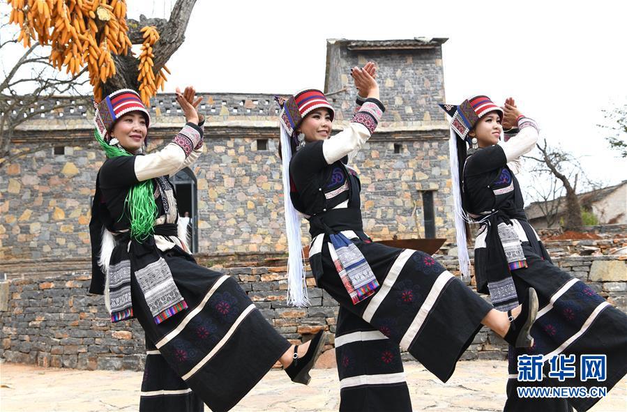 11月28日,大糯黑村村民在進(jìn)行彝族大三弦舞表演。新華社記者周華攝