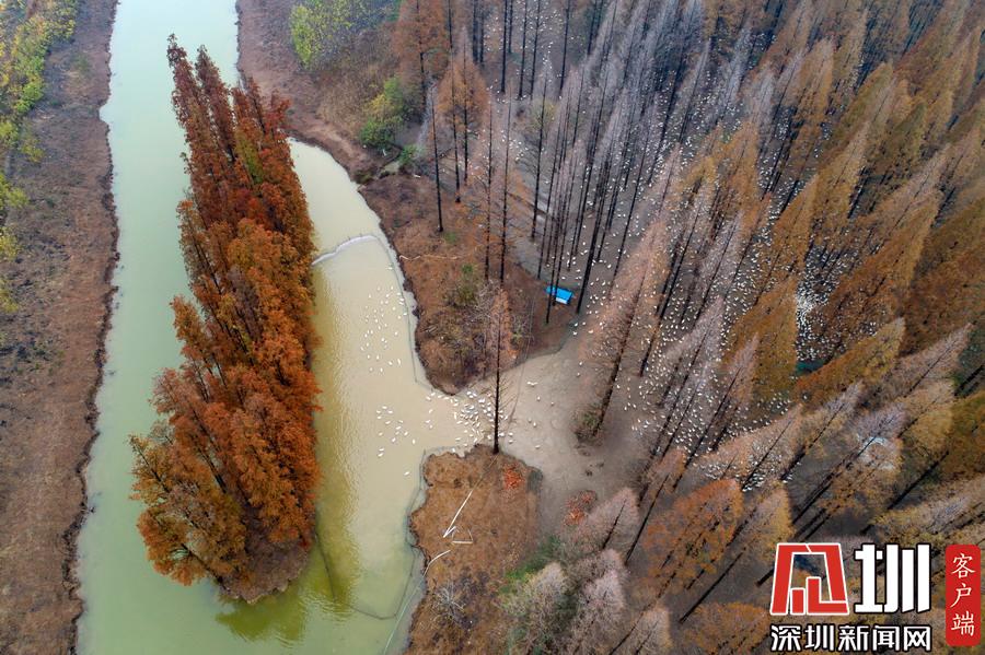 江蘇泗洪5000多只鵝林場吃食,場面壯觀。