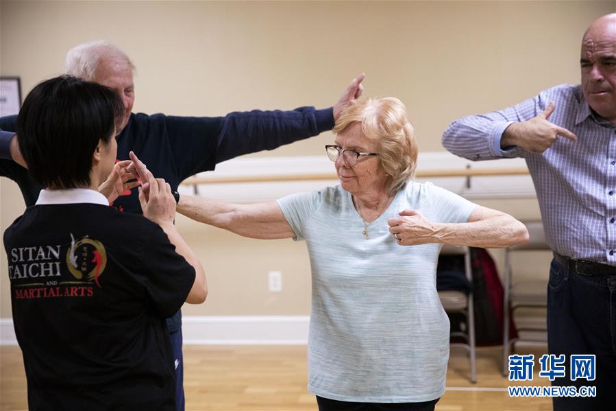 陳思坦的夫人林旭在位于美國紐約長島的一所社區(qū)老年活動中心指導(dǎo)老人練習(xí)太極(11月20日攝)。這里是陳思坦夫婦開設(shè)的一個公益教學(xué)項目。11月的紐約已進入初冬,位于美國紐約長島的思坦太極武術(shù)中心依然一片紅火景象,學(xué)員們從5歲的孩童到80多歲的老人,操練著太極拳、太極劍、長拳等武術(shù)招式。這里的主人陳思坦、林旭夫婦,也從早忙到晚,精心指導(dǎo)每一位學(xué)員的一招一式。6歲習(xí)武,22歲成為中國全國冠軍,26歲獲得首個世界冠軍……直到30歲退役,陳思坦在運動員生涯中曾獲得過32次國內(nèi)外各類武術(shù)大賽冠軍。36歲那年,懷著以太極拳和中國武術(shù)為媒介向世界推廣中國文化的夢想,陳思坦到美國紐約尋找新的舞臺。經(jīng)過十多年的艱苦打拼,陳思坦夫婦目前在紐約長島、法拉盛和曼哈頓都開設(shè)了長期的課程,思坦太極注冊在編的各個年齡段的學(xué)員近千人,有些“高徒”現(xiàn)在自己也開班授課,將太極推向更多地方。陳思坦夫婦現(xiàn)在思考更多的是如何將太極和武術(shù)推廣給更多的美國人,并讓他們理解其中蘊含的平衡、和諧的中國文化理念。他們創(chuàng)辦了紐約太極健身氣功活動日,在各類學(xué)校和社區(qū)開設(shè)太極或者武術(shù)課程,并利用美國的亞太裔文化月和多元文化節(jié)舉行武術(shù)和太極表演和體驗課程,讓更多美國人親眼看到、親身體會中國武術(shù)的魅力。從2011年起,他們還參與創(chuàng)辦了紐約太極大賽,如今已舉行九屆,吸引了美國、加拿大和中國國內(nèi)的隊伍參賽,影響力逐漸擴大。新華社記者王迎攝