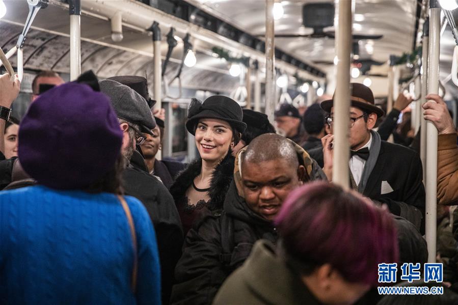12月8日,在美國紐約,人們搭乘“懷舊專列”。每年感恩節(jié)到新年之間的星期日,紐約地鐵都會用1932年至1977年間使用的老式列車在運營的線路上開行特別的“懷舊專列”,人們穿戴舊時服飾專程前來搭乘,體驗時光回溯的奇妙旅程。新華社記者王迎攝