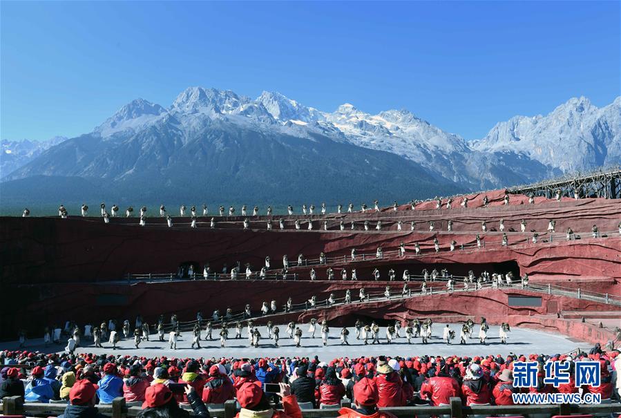12月10日,游客在玉龍雪山下觀看大型實(shí)景演出。新華社記者楊宗友攝