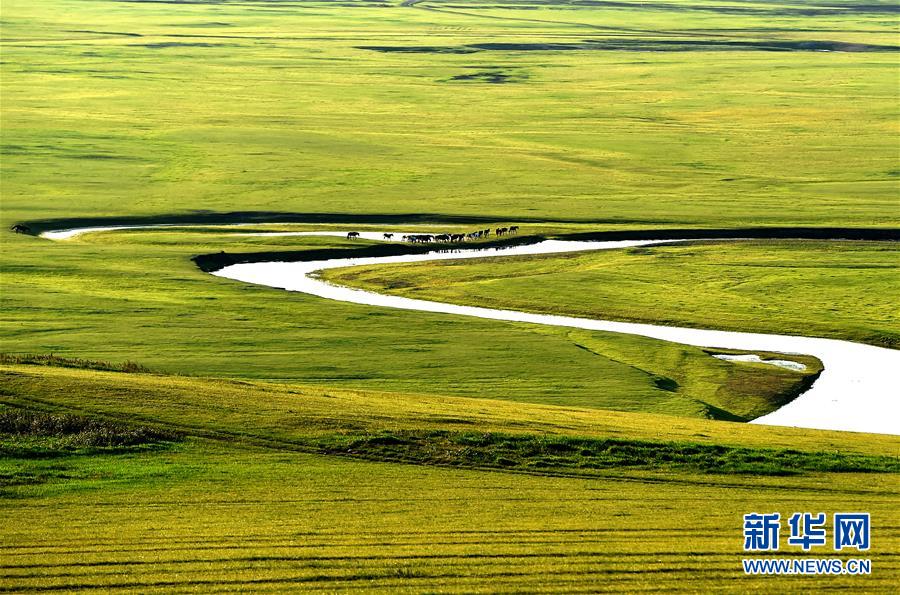 8月29日無人機(jī)拍攝的內(nèi)蒙古呼倫貝爾市陳巴爾虎旗境內(nèi)的莫日格勒河局部。新華社記者任軍川攝