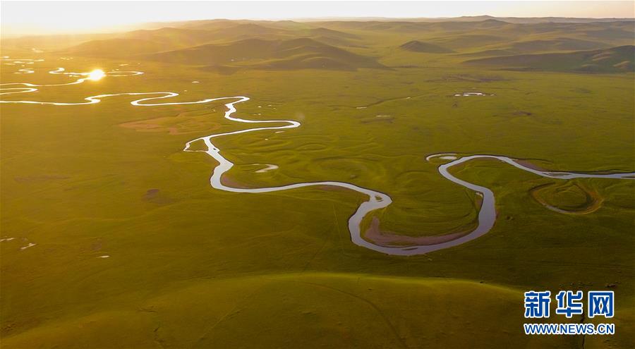 8月29日無(wú)人機(jī)拍攝的內(nèi)蒙古呼倫貝爾市陳巴爾虎旗境內(nèi)的莫日格勒河局部。新華社記者彭源攝