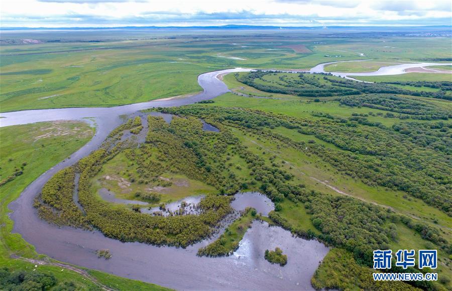 8月26日無(wú)人機(jī)拍攝的伊敏河。伊敏河流經(jīng)呼倫貝爾草原。新華社記者彭源攝