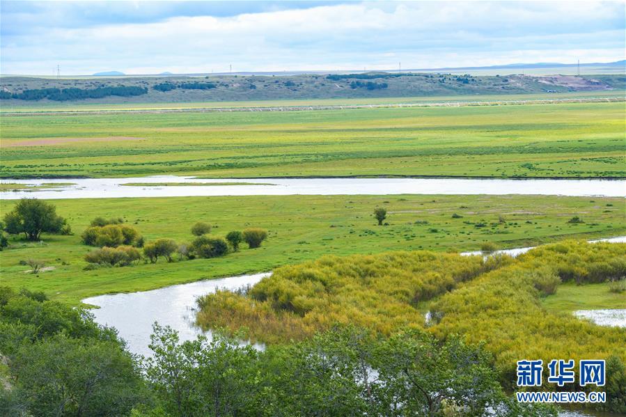 8月26日無(wú)人機(jī)拍攝的伊敏河。伊敏河流經(jīng)呼倫貝爾草原。新華社記者彭源攝