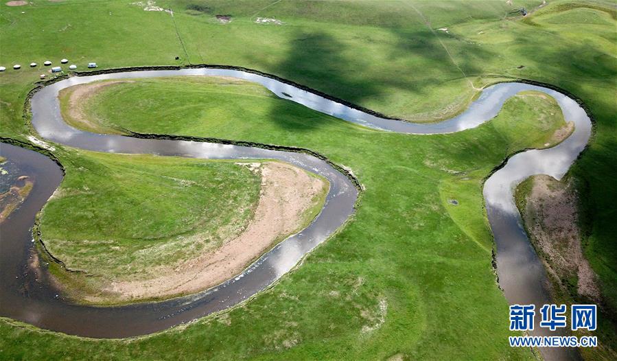 8月25日無人機拍攝的內(nèi)蒙古呼倫貝爾市陳巴爾虎旗境內(nèi)的莫日格勒河局部。新華社記者陳建力攝