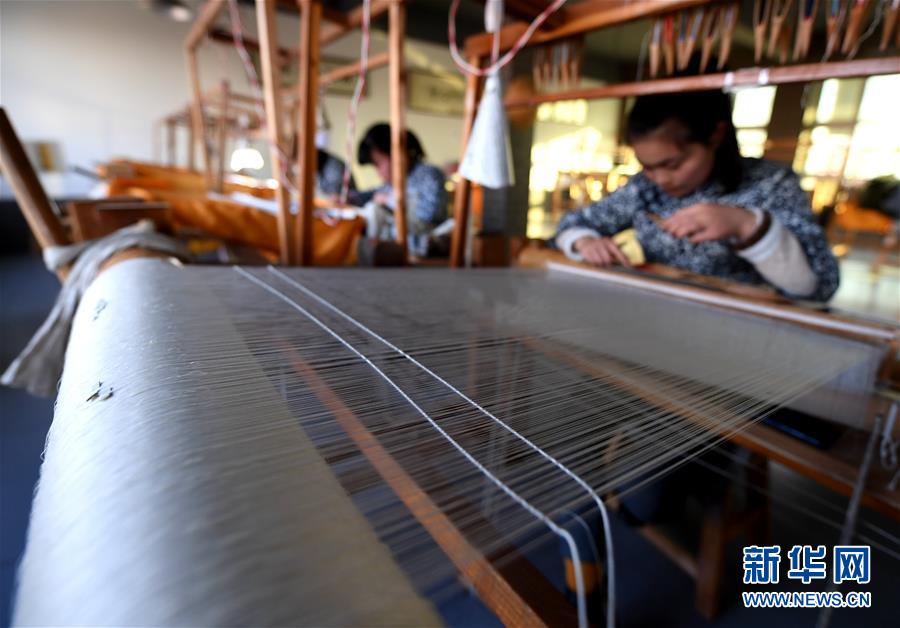12月14日,在河北定州緙絲傳習基地,工作人員在制作緙絲。 新華社記者 王曉 攝