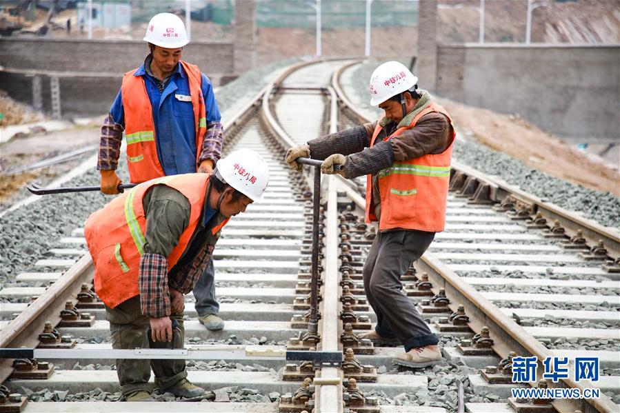 12月17日,中鐵八局建設(shè)者在改貌鐵路口岸施工。  新華社記者 劉續(xù) 攝