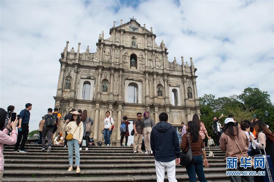 12月17日,游客在澳門大三巴牌坊游覽。新華社記者杜宇攝