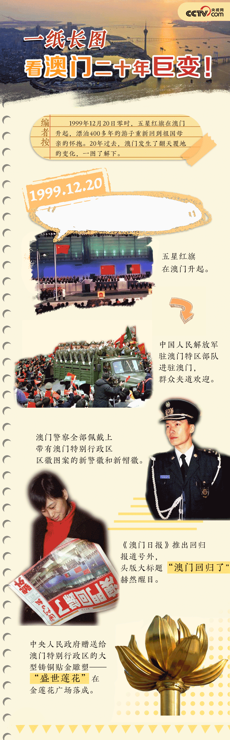 央視網(wǎng)消息:時(shí)光飛逝,澳門回歸祖國(guó)已二十載。