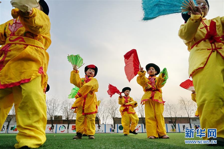 12月19日,河北省灤州市小閆營(yíng)小學(xué)學(xué)生在排練地秧歌。
