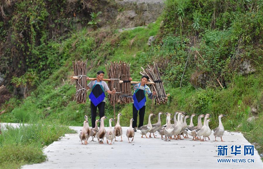 烏英苗寨的老人勞作歸來(lái)(9月2日攝)。新華社記者黃孝邦攝