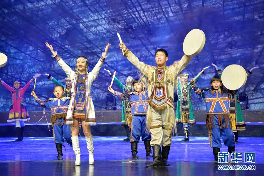 12月22日,演員在表演歌舞《敖魯古雅》。 當(dāng)日,冰雪之約——喜迎“十四冬”惠民文藝演出在呼倫貝爾大劇院舉行,為觀眾呈現(xiàn)一場“歌舞盛宴”。 新華社記者 徐欽 攝