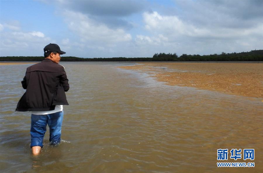海南新盈紅樹(shù)林國(guó)家濕地公園巡護(hù)員兼監(jiān)測(cè)員羅理想在濕地公園內(nèi)的灘涂上做監(jiān)測(cè)(11月27日攝)。 羅理想2006年起開(kāi)始參與紅樹(shù)林濕地的保護(hù)工作,近年來(lái)他參加了很多關(guān)于濕地的培訓(xùn)。2016年,羅理想在工作中監(jiān)測(cè)到極危鳥(niǎo)種勺嘴鷸,當(dāng)時(shí)有許多媒體做了報(bào)道,后來(lái)他又配合專家在濕地公園里發(fā)現(xiàn)了拉氏紅樹(shù),“那個(gè)時(shí)候感覺(jué)自己的工作很有價(jià)值”,羅理想說(shuō)。 新華社發(fā)