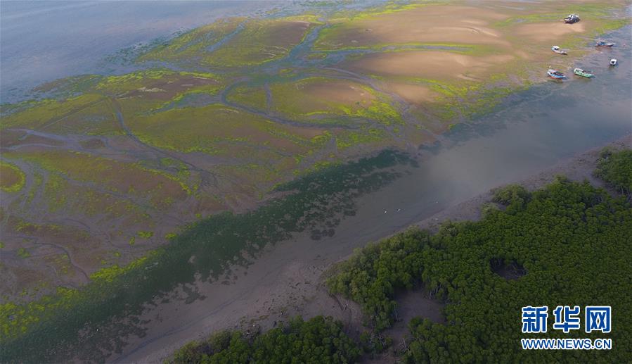 海南儋州新英灣紅樹林市級自然保護(hù)區(qū)的紅樹林和灘涂(12月10日無人機(jī)拍攝)。新華社記者楊冠宇攝