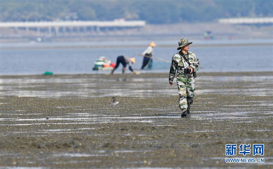 海南儋州新英灣紅樹林市級自然保護(hù)區(qū)護(hù)林員陳正平在保護(hù)區(qū)內(nèi)的灘涂上巡護(hù)(12月10日攝)。 陳正平2010年開始在保護(hù)區(qū)工作,他將工作發(fā)展成愛好,廣泛參加各種培訓(xùn)和業(yè)內(nèi)交流。他在工作中拍到瀕危鳥類白肩雕出現(xiàn)在海南的照片,這刷新了海南省的鳥種記錄。新華社記者楊冠宇攝