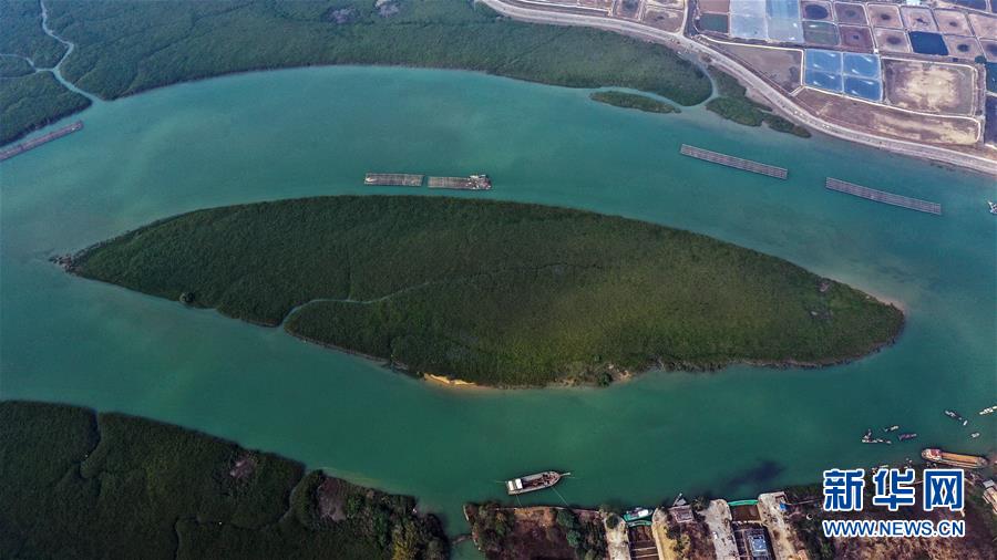 12月21日無人機(jī)拍攝的廣西合浦縣黨江鎮(zhèn)更螺圍出??谝痪啊6?,廣西廉州灣海域風(fēng)光別致。新華社記者張愛林?jǐn)z