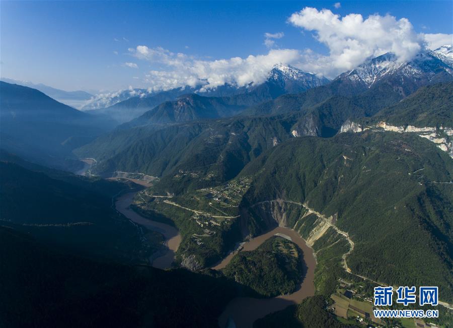 這是4月27日在云南省貢山獨(dú)龍族怒族自治縣丙中洛鎮(zhèn)拍攝的“怒江第一灣”(無人機(jī)拍攝)。新華社記者江文耀攝