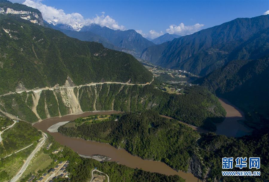 這是4月27日在云南省貢山獨(dú)龍族怒族自治縣丙中洛鎮(zhèn)拍攝的“怒江第一灣”(無人機(jī)拍攝)。新華社記者江文耀攝