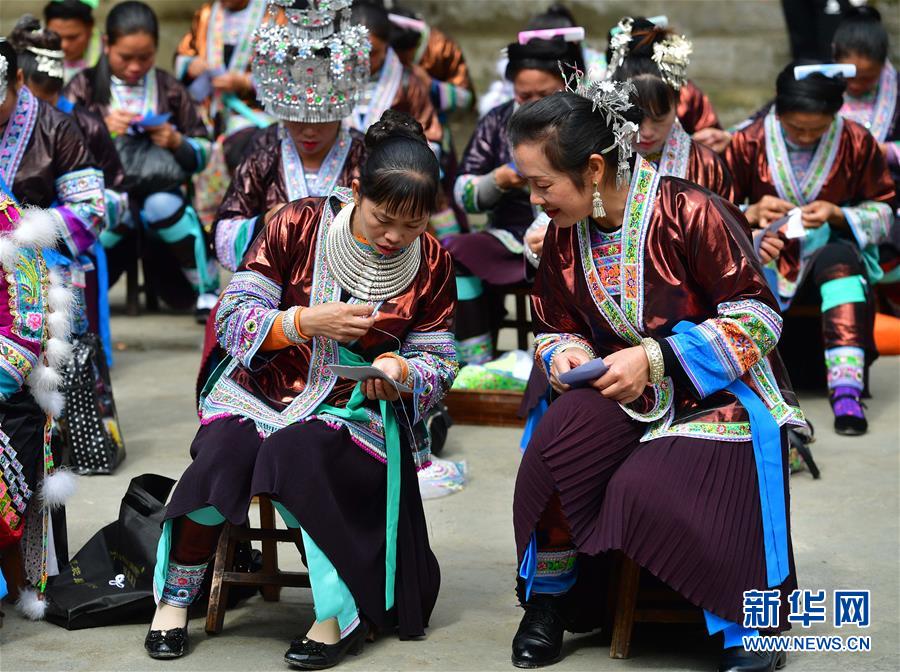 婦女在烏英苗寨的培訓課上學習刺繡(10月18日攝)。新華社記者黃孝邦攝