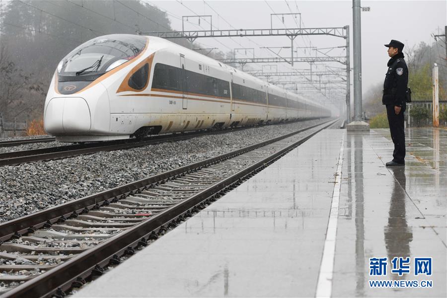 12月18日,常曉龍?jiān)诙樟x堂站接車(chē)。新華社記者張端攝