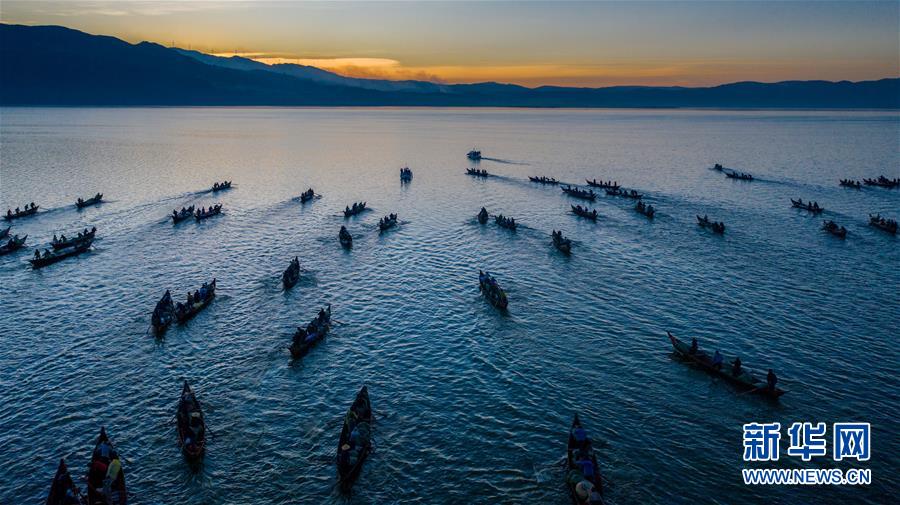 12月25日,漁船駛?cè)胄窃坪o(wú)人機(jī)拍攝)。當(dāng)日,位于云南省玉溪市江川區(qū)的星云湖迎來(lái)一年一度的開(kāi)湖捕魚(yú)季,600余艘漁船駛?cè)胄窃坪稉?。星云湖是云南省九大高原湖泊之一,本次開(kāi)湖捕魚(yú)時(shí)間將從2019年12月25日持續(xù)至2020年1月23日。新華社記者胡超攝