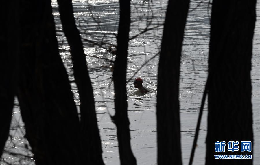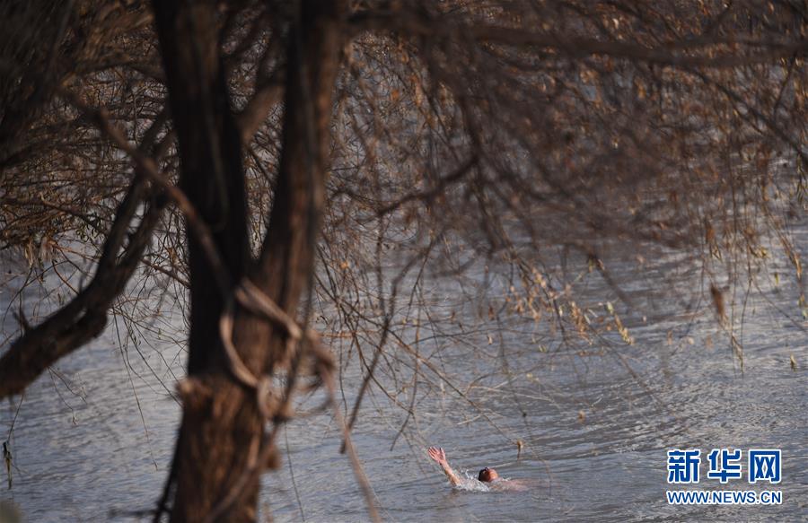 12月18日,冬泳愛好者張敏捷在黃河冬泳。新華社記者馬寧攝