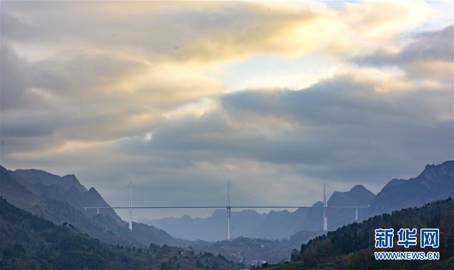12月30日拍攝的貴州平塘特大橋橋塔。新華社記者楊文斌攝