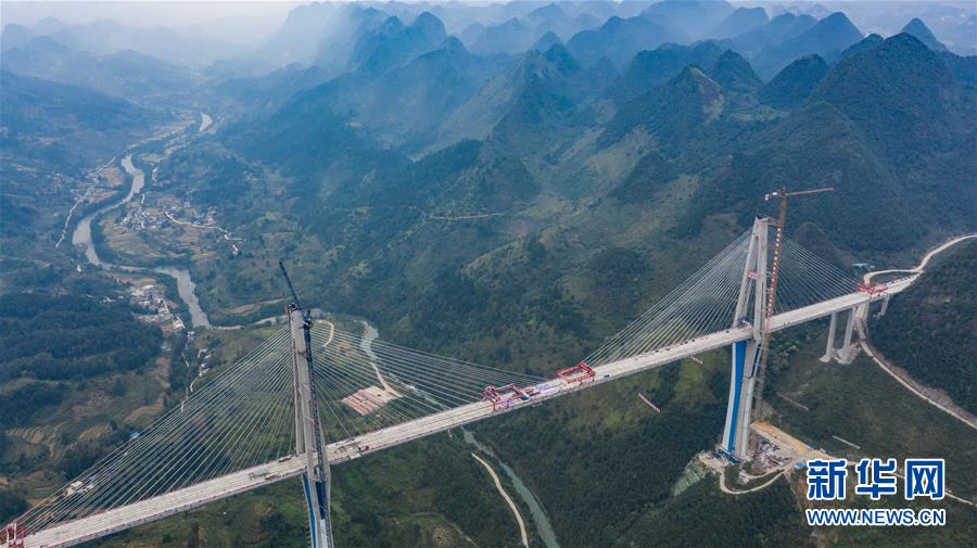 這是正在澆筑最后一方混凝土的平塘特大橋(9月26日無人機拍攝)。新華社記者陶亮攝