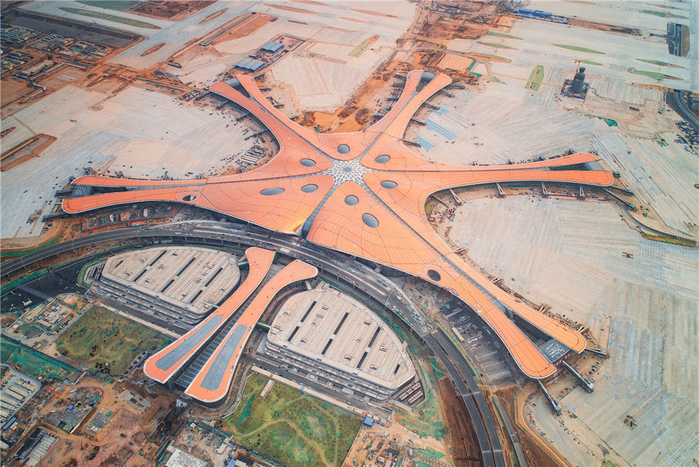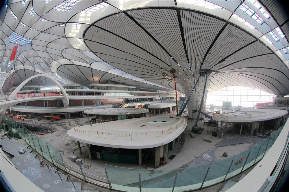 2019年5月24日,北京,新機場建設距離竣工時間還有37天,工程進入倒計時。機場開建至今不到5年時間,機場施工工程將于6月底竣工,將于9月底投入運營,該機場有望成為世界上規(guī)模最大的機場之一。任振朝/千龍圖像/視覺中國
