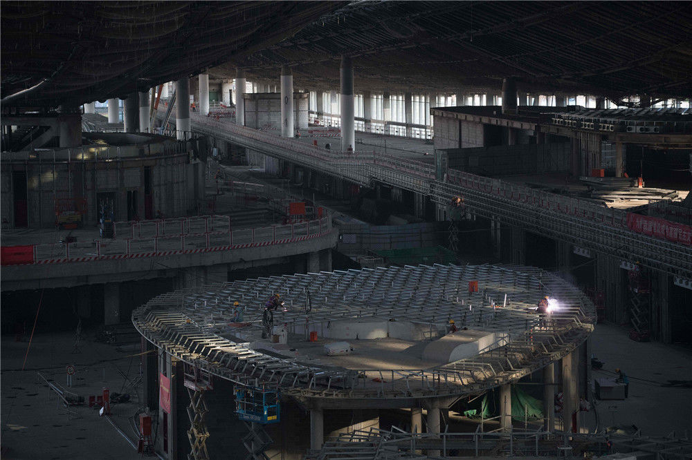 2019年1月20日,北京,探訪北京大興國際機場航站樓,建設工地正在如火如荼地有條不紊地建設之中。丁幫學/千龍圖像/視覺中國