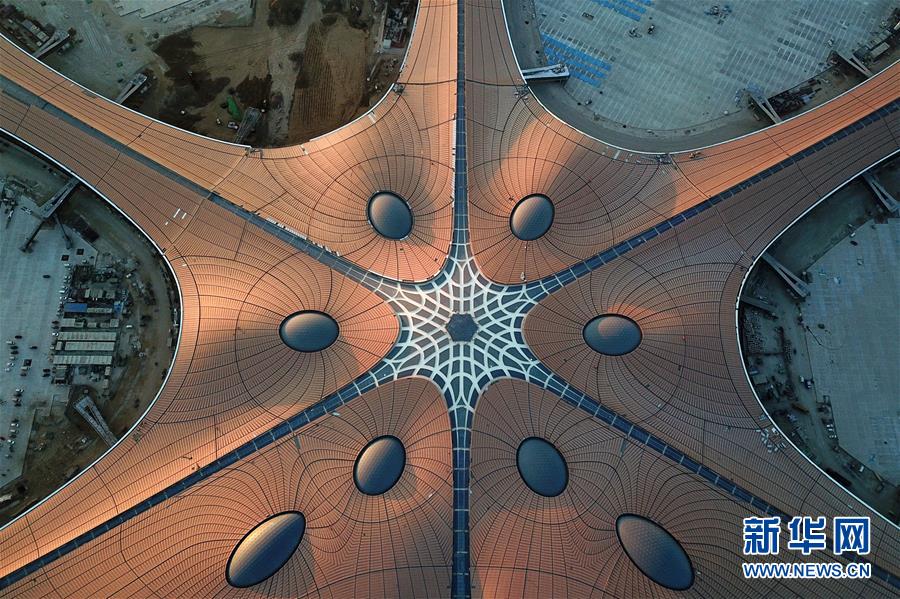 2018年12月19日,北京大興國際機場航站樓的屋面已基本完工,一只金色“鳳凰”完整地出現在北京城南。視覺中國