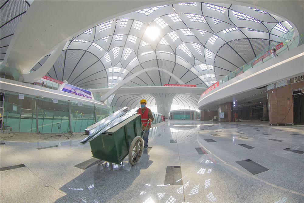 2019年4月26日,北京大興國際機場將于9月底正式通航。工程建設進入總攻階段,目前,航站樓內部裝飾進行收尾的工作。武輝/千龍圖像/視覺中國