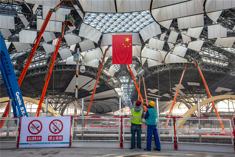 2018年12月19日,北京大興國際機場航站樓的室內裝修正在推進中。視覺中國