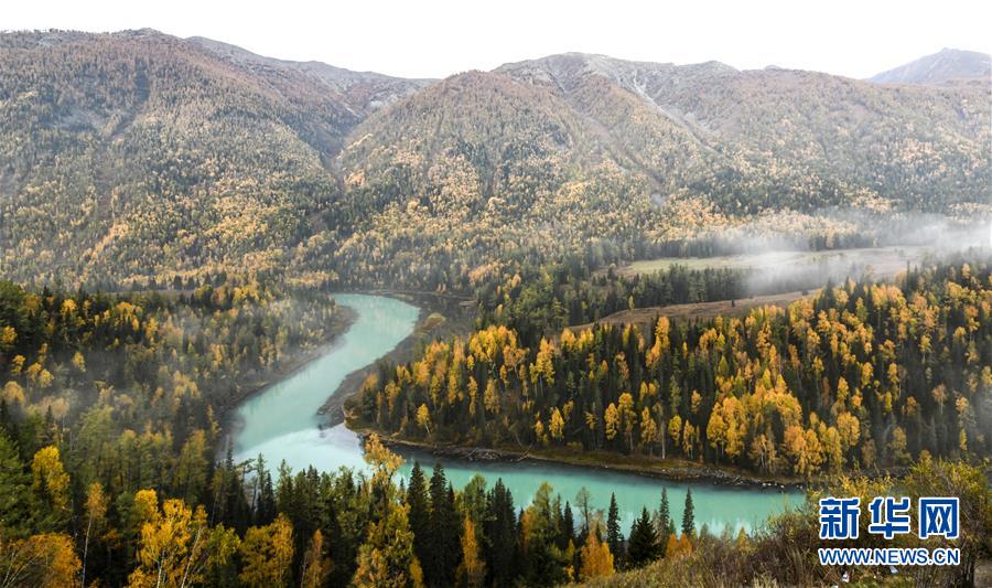 9月24日拍攝的喀納斯景區(qū)風(fēng)光。新華社記者王菲攝