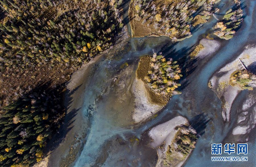 9月25日無(wú)人機(jī)拍攝的喀納斯景區(qū)風(fēng)光。新華社記者王菲攝