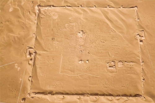 2019年10月18日拍攝的黑城遺址城池全貌(無人機(jī)照片)。黑城遺址位于內(nèi)蒙古阿拉善盟額濟(jì)納旗達(dá)來庫布鎮(zhèn),建于公元九世紀(jì),是草原絲綢之路上現(xiàn)存較為完整的一處古城遺址,2001年被列入第五批全國重點(diǎn)文物保護(hù)單位。新華社記者彭源攝