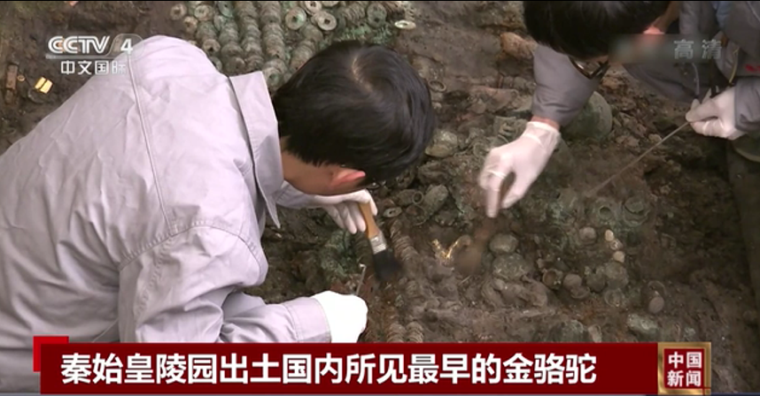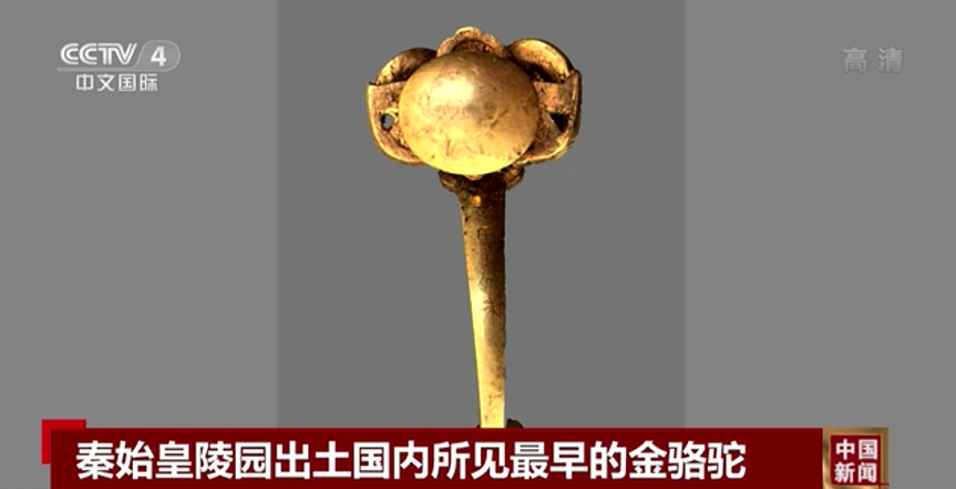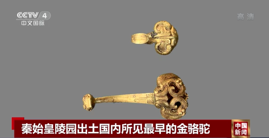 出土的金駱駝是目前國內(nèi)所見最早的單體金駱駝。這些出土器物不僅為漢代絲綢之路開通以前,中西文化交流提供了重要依據(jù),也為秦代政治、經(jīng)濟(jì)、軍事、科技、文化等研究提供了重要的實(shí)物材料。