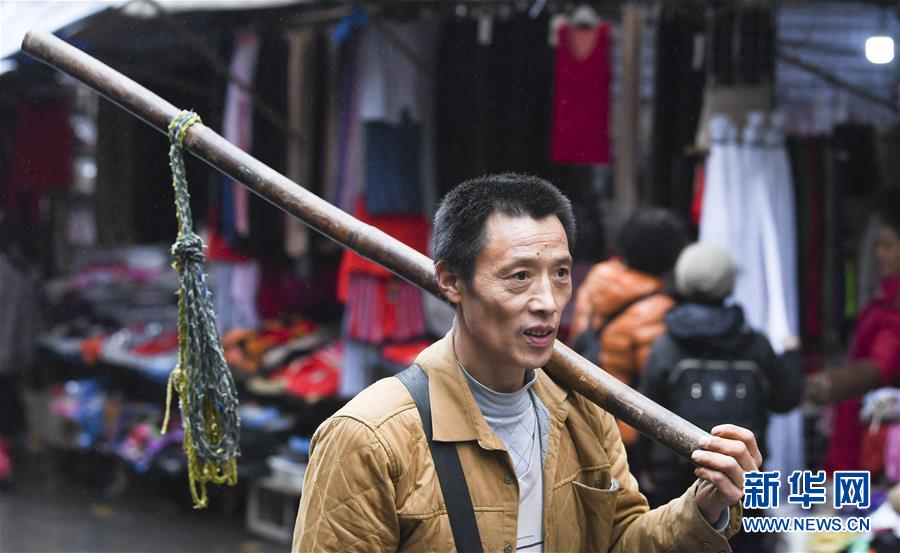 冉光輝在重慶朝天門一帶尋找搬運(yùn)業(yè)務(wù)(1月5日攝)。新華社記者王全超攝