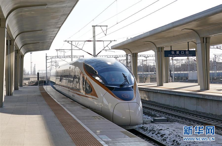 2019年12月30日,G2505次列車駛?cè)刖埜哞F張家口站。 當(dāng)日,北京至張家口高速鐵路開通運(yùn)營,崇禮鐵路同步通車。 新華社記者 楊世堯 攝