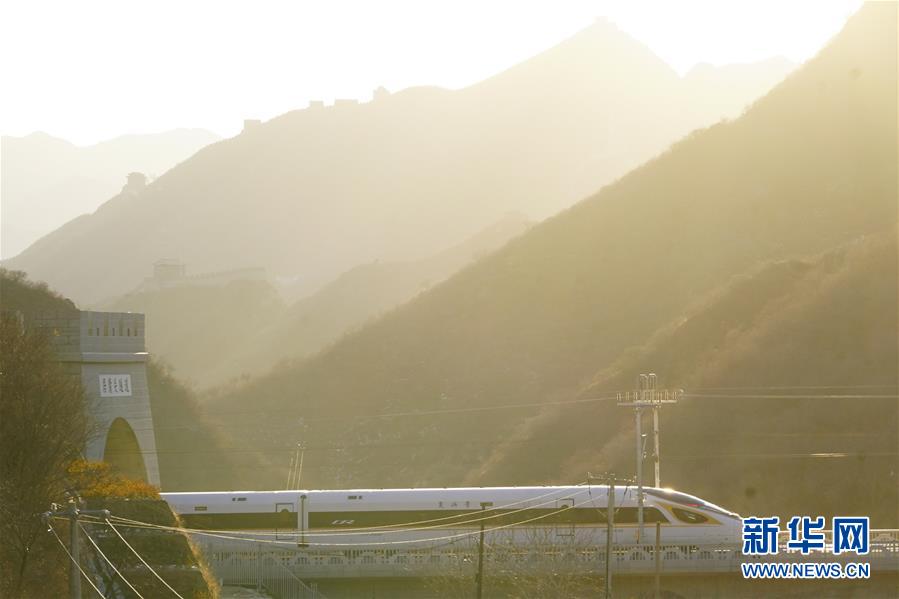 2019年12月30日,G2418次列車駛過居庸關(guān)長(zhǎng)城。當(dāng)日,北京至張家口高速鐵路開通運(yùn)營(yíng)。 新華社記者 邢廣利 攝