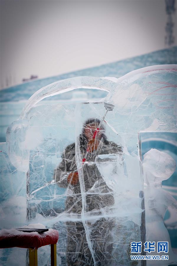 1月7日,參賽者在進行冰雕創(chuàng)作。新華社記者王松攝