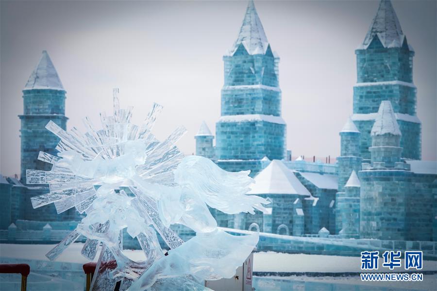 在哈爾濱冰雪大世界內(nèi)拍攝的冰雕作品(1月8日攝)。新華社記者王松攝