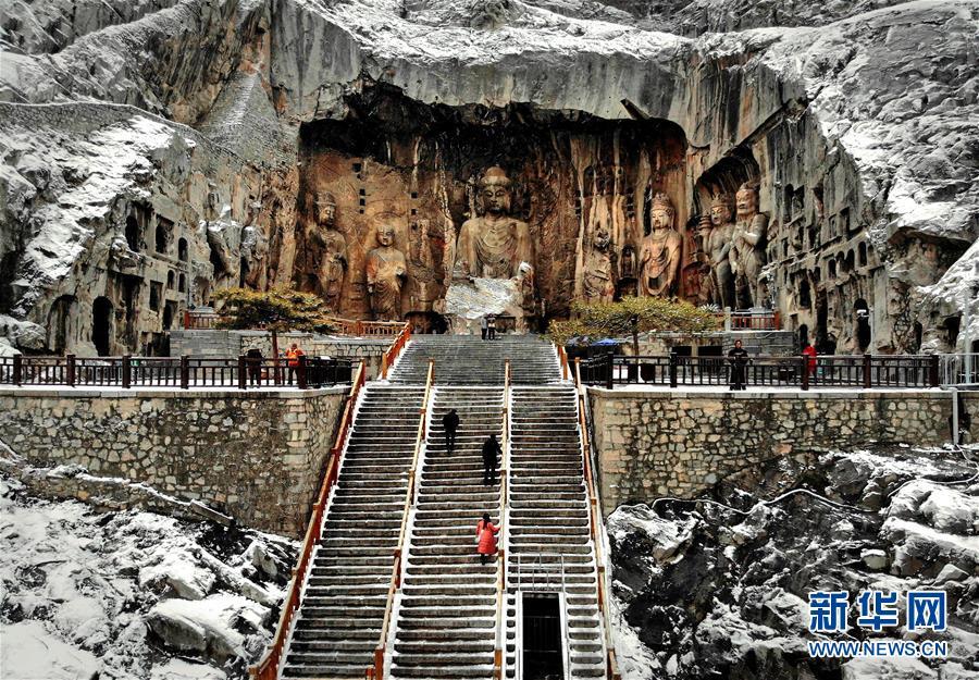 1月9日無人機拍攝的洛陽龍門石窟奉先寺。新華社記者李安攝