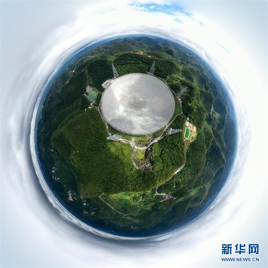8月27日無人機(jī)拍攝的“中國(guó)天眼”全景圖。新華社記者歐東衢攝