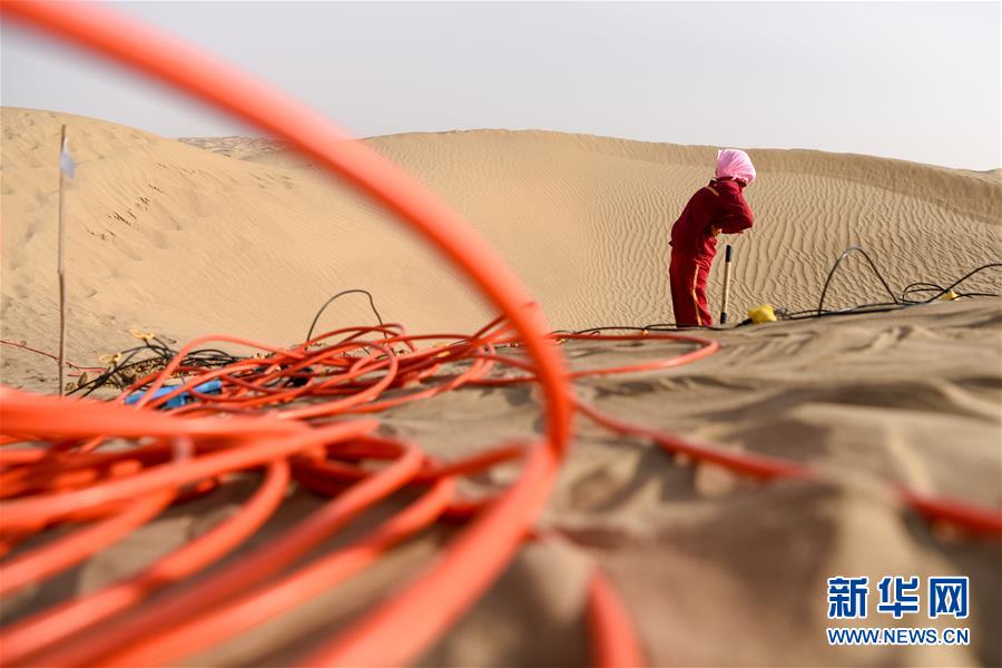 1月13日,測量工在測線上布設炮點樁號。地球物理勘探是油氣開發(fā)的第一步,相當于給地球做CT。物探工人按照嚴格的測線部署,在相應位置鉆井,然后實施地震,采集地震波數(shù)據(jù)??蒲腥藛T通過數(shù)據(jù)組成的“CT片”,就能夠清晰地“看”到地下的地質(zhì)結構,判斷哪里埋藏有石油或者天然氣。2019年10月,東方地球物理勘探有限責任公司塔里木物探處2113隊進入新疆塔克拉瑪干沙漠腹地,開始中古14-21、塔中2兩個區(qū)塊的三維地震勘探。近2000名物探工人將在1000平方公里的范圍內(nèi)一直工作到2020年4月,這也意味著他們將在塔克拉瑪干沙漠腹地連續(xù)度過第14個除夕夜。蘊藏著豐富石油天然氣資源的新疆塔克拉瑪干沙漠有“死亡之?!敝Q,氣候干燥,年降水量在50毫米以下,冬季地表最低溫度超過零下30攝氏度,是世界油氣勘探難度最大的地區(qū)之一。為避開風季,物探工人每年9、10月份進入沙漠,一直工作到來年4月,夜以繼日與黃沙、嚴寒為伴,用辛勤的汗水,為祖國找油找氣。新華社記者丁磊攝