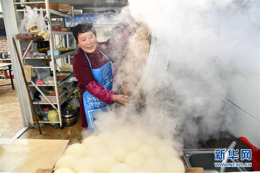 在榮成市煙墩角村,于海洋的母親趙錦蘭在蒸餑餑(1月12日攝)。新華社記者 郭緒雷 攝