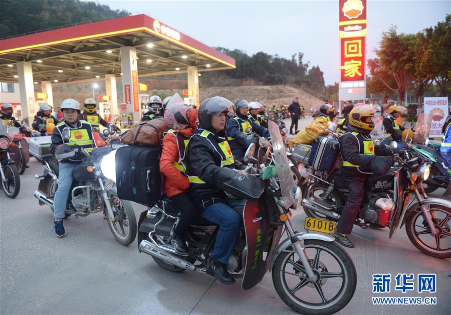1月15日,在福建泉州,騎摩托車返鄉(xiāng)的外來(lái)務(wù)工人員啟程返鄉(xiāng)。 新華社記者 賀燦鈴 攝