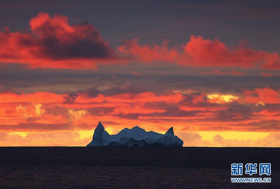 南大洋上的午夜冰山(2019年12月28日攝)。新華社記者劉詩平攝
