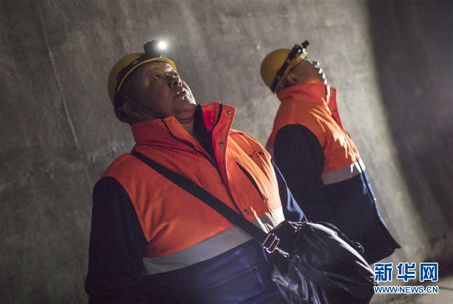 通化通信車間無線工區(qū)鐵路通信工人觀察隧道頂部通信線纜是否有外露情況(1月10日攝)。2020年春運(yùn)1月10日拉開帷幕。新華社記者許暢攝